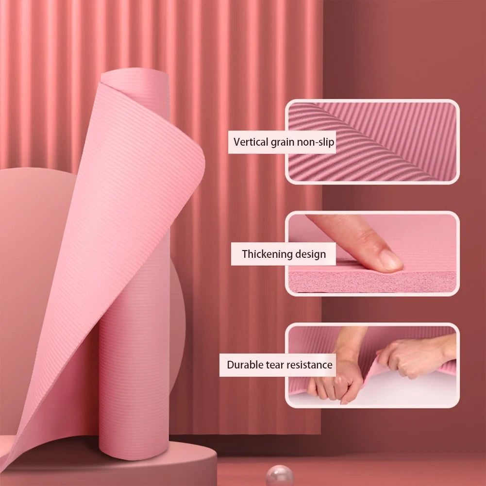 Yoga Mat Pilates Floor Mat 10mm Thick Solid Color Fitness Mat Multi-Function Yoga Workout Mat for Yoga Pilates